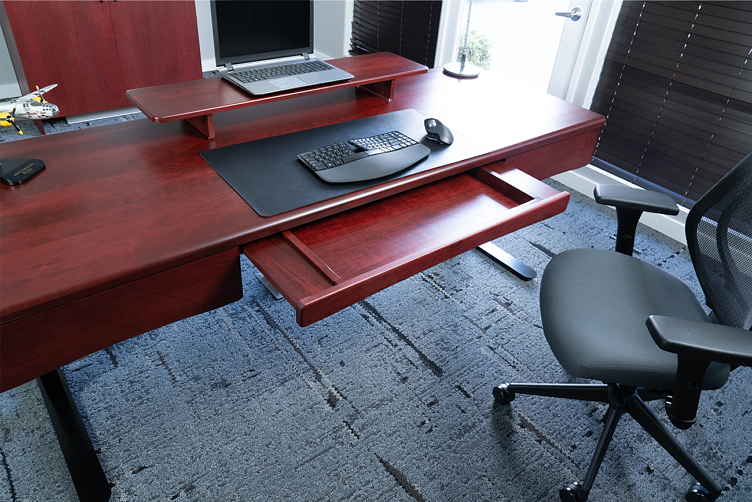 A modern standing desk with drawers should include cable routing channels, grommets, or under-desk trays. A good cable organization keeps the workspace clean and professional-looking.