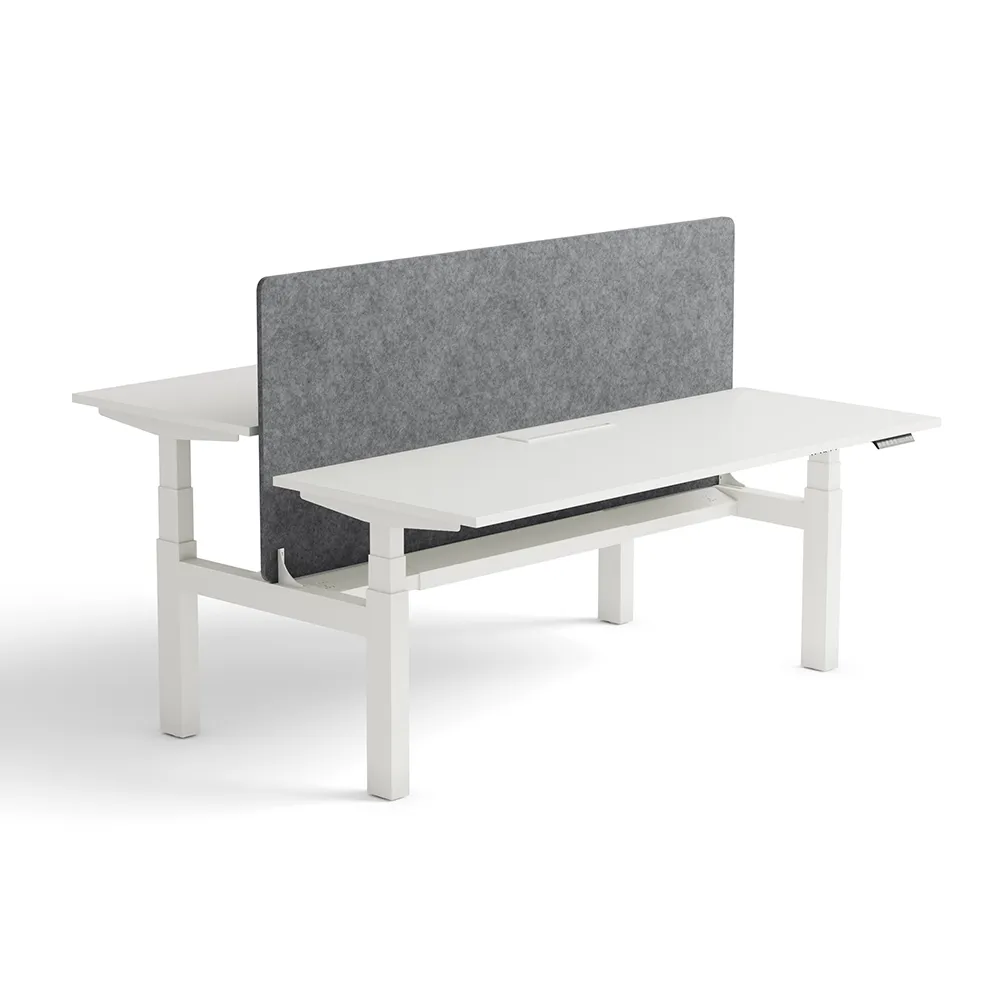 Designed for two, this standing desk workstation creates a shared space that encourages real-time teamwork while maintaining individual focus. Perfect for modern offices that value communication without sacrificing personal productivity.