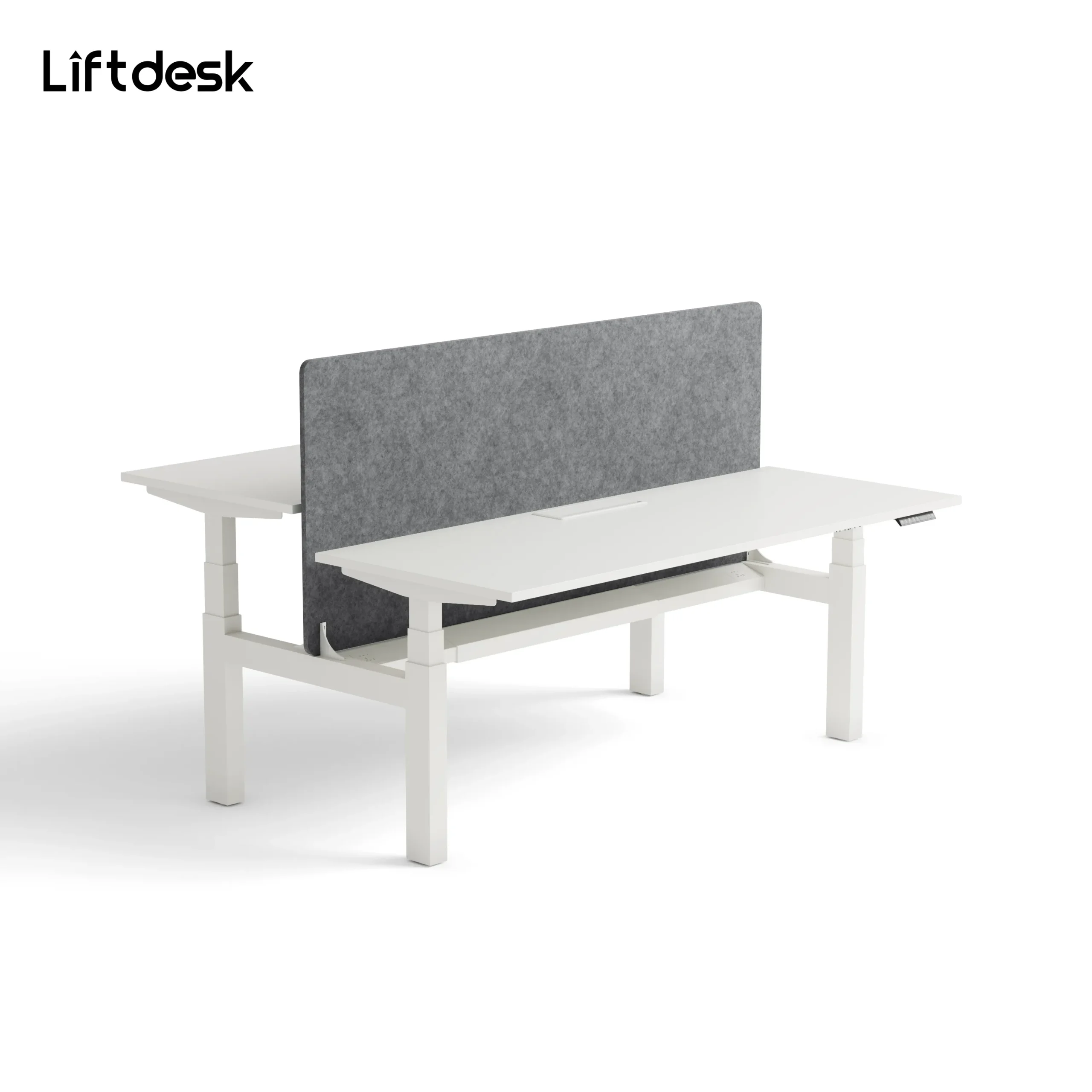 Maximize your office space with Liftdesk 2-person standing desk workstation. Its thoughtful design combines two individual workstations into one streamlined unit, perfect for optimizing floor plans in modern offices. This efficient layout provides ample surface area for dual users without overcrowding, helping maintain a clean, organized, and professional environment.